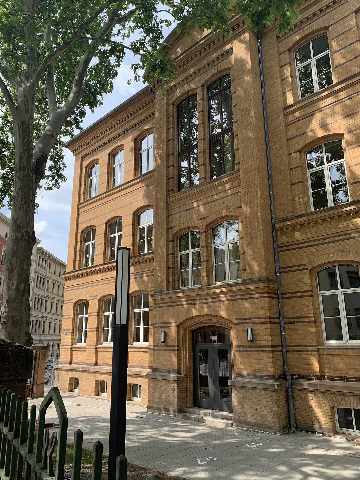 Unter Berücksichtigung aktueller Vorgaben zum Brandschutz, zur Barrierefreiheit und zum Denkmalschutz sowie energetischen Anforderungen, wurde ein zeitgemäßes Raumprogramm für eine dreizügige Schule für 360 Grundschülerinnen und -schülern sowie 270 Hortkindern entwickelt.