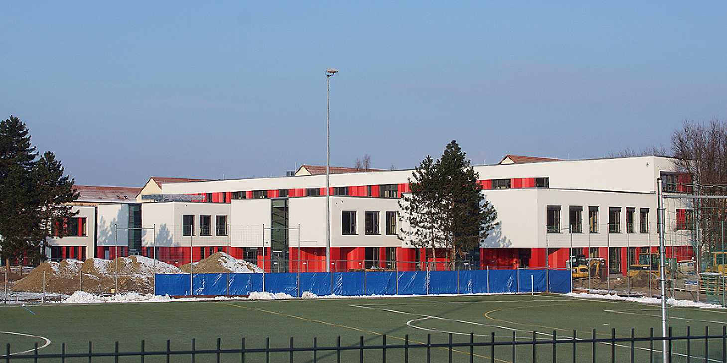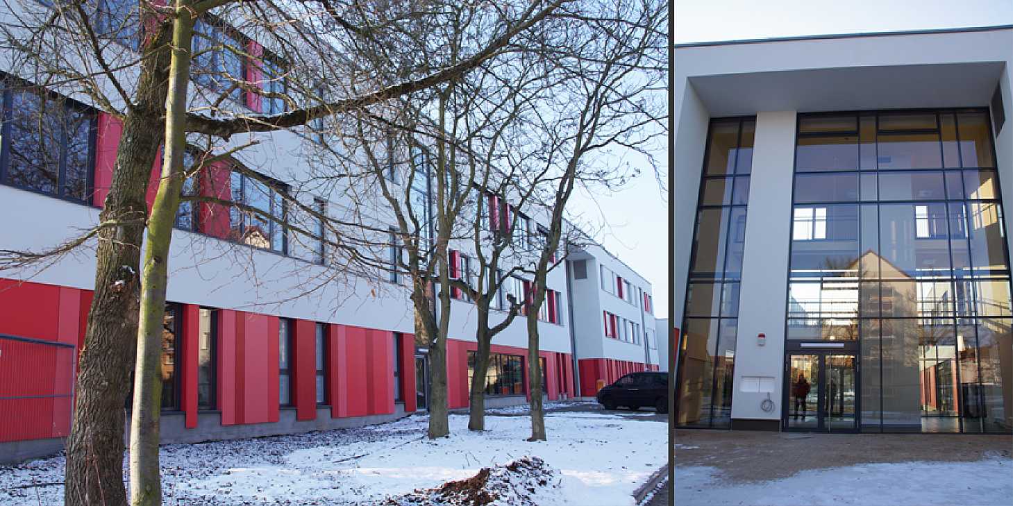 Nach einer umfangreichen Standortdiskussion unter Mitwirkung unseres Büros entschied sich die Stadt Borna 2009 zum Neubau dieser dreizügigen Grundschule inklsive 4 zusätzlichen LRSKlassen. Der integrierte Hort hat eine Kapazität von 260 Plätzen.