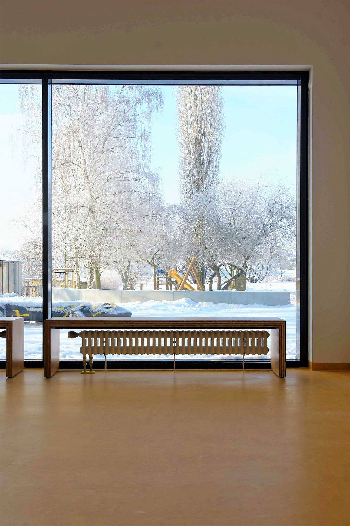 Das Gebäude wurde als Erweiterung an das denkmalgeschützte Schulensemble konzipiert. Schulgebäude und Hort sind künftig eng miteinander verbunden und ergänzen sich jeweils in Kooperation am Vormittag und nach der Schule.