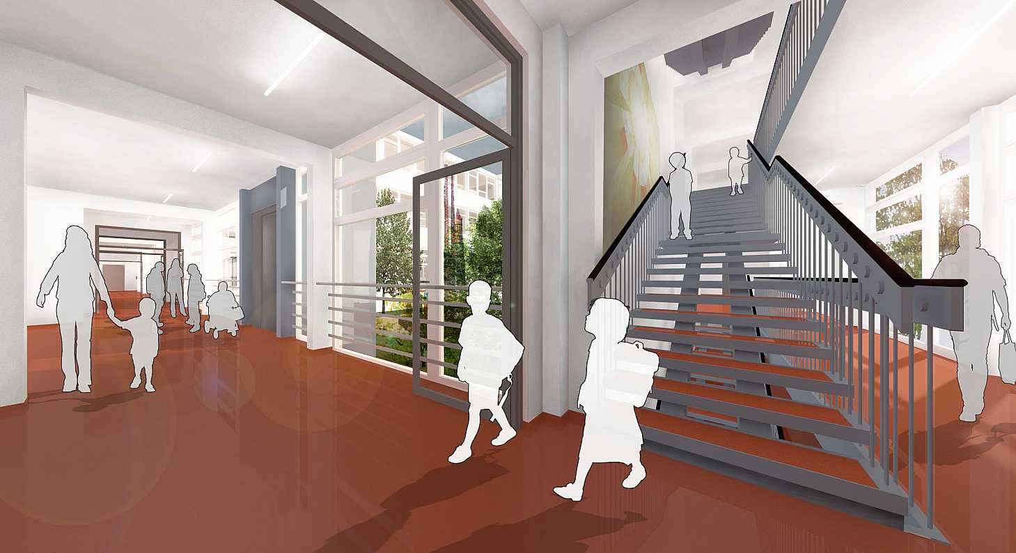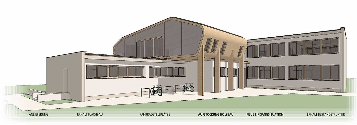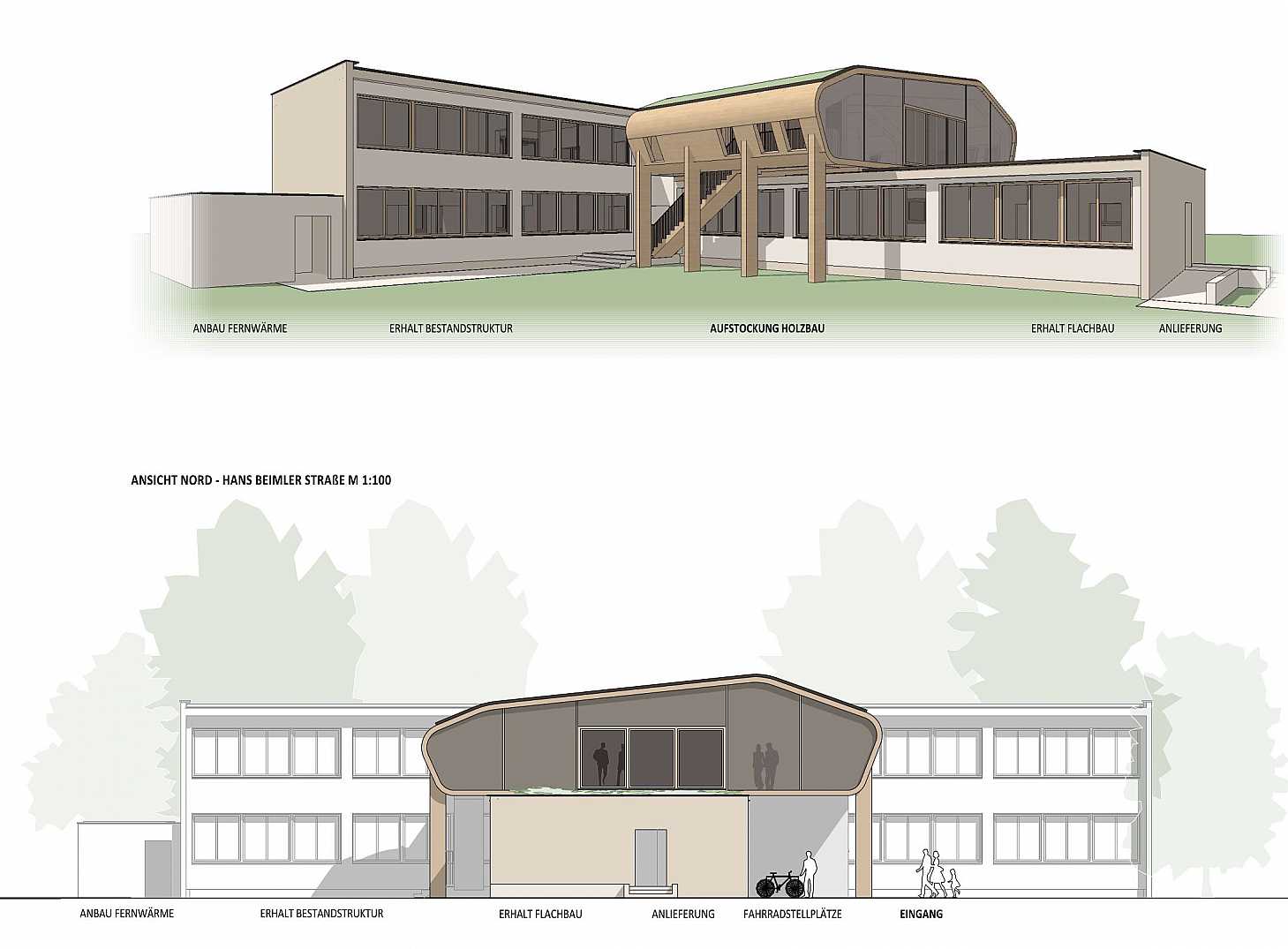 Das Bestandsgebäude der Oberschule Mölkau sollte mittels einer Erweiterung um einen neuen Verwaltungstrakt, Klassen- und Fachunterrichtsräume, sowie einer Aula/ Mensa ergänzt werden. Durch das Vervollständigen des Schulgebäudes am Kopfende und einem überwiegend freistehenden Erweiterungsneubau als neuer Haupteingang konnte sich das Büro im Wettbewerb durchsetzten. In der Entwurfsplanung wurde die Idee konkretisiert und mit einer Präsentation im Gestaltungsforum gefestigt.